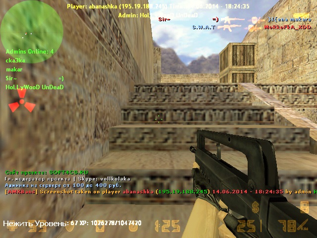 | 1)Мой ник: abanashka 2)Мой SteamID: VALVE_0:0:791821897 3)Ник админа: HoLLyWooD UnDeaD 4)Сервер: War3FT | Public 5)Скрин: скрин ниже
